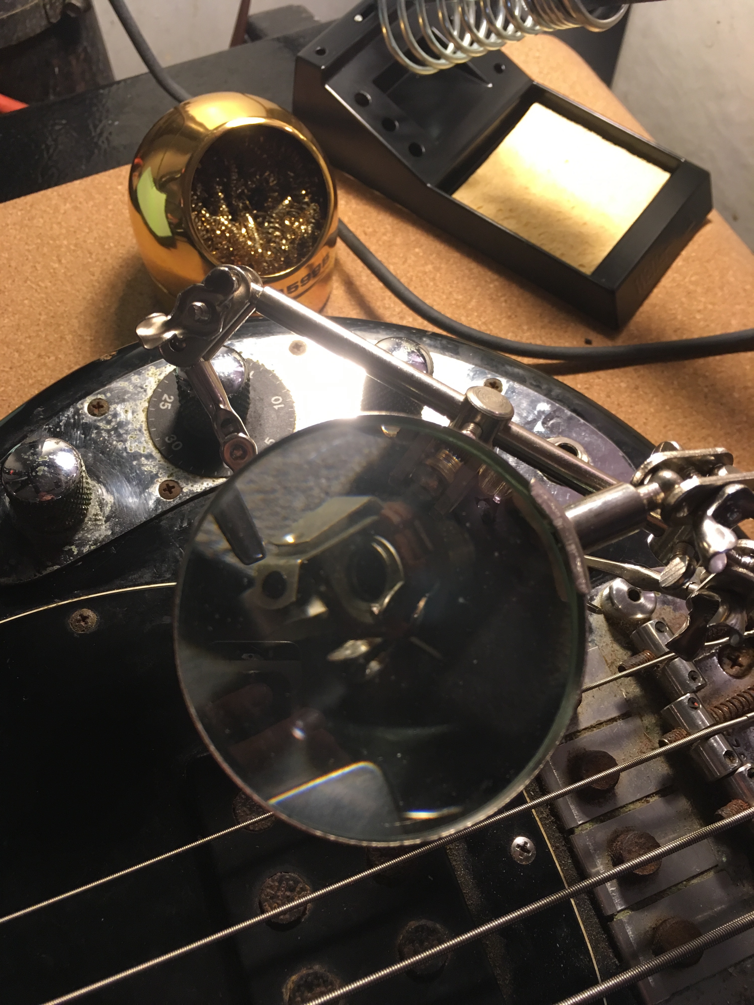 Here’s what it sounds like – the volume is set to max, the overdrive button is in, the tone is set at noon, and I’m playing an Agile LP clone via both pickups with volume and tone knobs at 7. Recorded into an iPhone balanced precariously on top of the Marshall speaker cab.